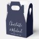 Ballotin de mariage élégant avec des noms de script signature chic et une date spéciale sur un arrière - plan bleu marine. Vous pouvez personnaliser avec votre propre message de remerciement au contraire. Une façon parfaite de remercier vos invités ! Conçu par Thisisnotme©