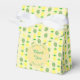 Ce ballotin génial dispose d'un motif de fruits tropicaux à l'ananas jaune avec des toupies vertes et de jolis feuilles de palmiers vert pâle. Idéal pour un Mariage à thème estival ou tropical. Il y a un cercle jaune avec des motifs blancs marbrés qui contient du texte personnalisable pour vous permettre de personnaliser cette conception.