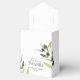 Cette boîte de faveur de mariage présente des branches d'olivier aquarelle avec les mots "Amour & Merci" mis dans la typographie branchée. Utilisez les champs modèle pour ajouter votre nom et votre date de mariage ou des détails personnalisés. Pour en savoir plus sur la papeterie mariage verdoyante, visitez le www.zazzle.com/dotellabelle Aquarelle de Victoria Grigaliunas