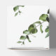 Ce design présente des feuilles d'eucalyptus rustiques. La verdure d'eucalyptus est complétée par un élégant texte noir. Les tons verts poussiéreux de la feuille d'eucalyptus créent une atmosphère rustique de jardin boisé de campagne. Design ballotin de mariage élégant avec des éléments modernes. Des invitations de mariage et d'autres articles de papeterie sont également disponibles.