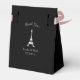 Ces élégantes boîtes de mariage à la française arborent une image blanche de la tour Eiffel sur un arrière - plan noir. Personnalisé avec l'expression "merci" et vos informations mariages en texte rose de style français et Art Déco. Un look très parisien et chic pour votre mariage.
