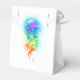 Grande méduse irisée, artistiquement dessinée, brillante, avec de longues tentacules sur le blanc, peinte sur l'arrière - plan multicolore. Méduse arc-en-ciel.