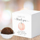 Un mignon ballotin baby shower neutre, avec une aquarelle orange pastel d'un citrouille et "un gentil petit merci" et "un doux petit citrouille est en route" écrit dans une simple typographie grise et un script élégant avec des swashes. Personnalisez facilement le nom et la date de la douche de la mère en coordonnant la typographie grise. Précisez le sexe du bébé si vous le désirez (p. ex., "est en route").