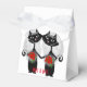 Une fête amusante boîtes de faveur pour un mariage lesbien avec deux mariées cool en chats portant des voiles blancs, portant des bouquets de rose rouge représentant les deux mariées tenant la main.