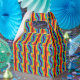 Cette oeuvre présente un motif arc-en-ciel coloré avec des poings levés.