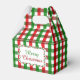 Motif en vichy rouge et vert. Rouge et vert à damiers en vichy. Une forme blanche au milieu avec le texte "Joyeux Noël".
