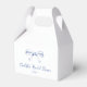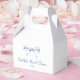Cette charmante boîte de faveur de mariage est une façon charmante d'emballer des friandises ou de petits cadeaux pour les invités. Ornée d'un nœud dessiné à la main et d'un script élégant, elle ajoute une touche attentionnée à la célébration. Personnalisez-la avec le nom de la mariée et la date de l'événement pour un détail digne d'être conservé qui rend la journée encore plus spéciale.