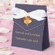La belle dame montrée sur cette boîte est une illustration vintage reproduite (vers 1897) par le célèbre artiste Alfons Mucha. Elle porte une robe de tête bijouée, rehaussée d'or et de lavande profonde. Modèle haut et avant pour le nom du destinataire, le nom de la mariée et du marié et la date du mariage. Cette collection est également disponible avec un arrière - plan ecru.