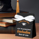 Ce ballotin moderne orange et noir de la fête de fin d'études supérieures de la coutume met en vedette votre nom de lycée ou de collège pour la classe de 2025. Customisez avec votre année de graduation sous l'écriture chic manuscrite et le casquette blanc pour un grand cadeau de maintien de diplômes personnalisés.