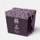 Ce design de boîte à emporter chinoise est dans un beau motif de brocart asiatique pour un ballotin élégant pour tout mariage à thème chinois ou asiatique. Les personnages chinois de "la faveur de mariage" avec des accents de bijoux à l'arrière de la boîte apportent une touche traditionnelle pour le mariage. PARCOURIR DES ÉLÉMENTS CORRESPONDANTS DANS CETTE COLLECTION
