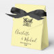 Make your big day even more special with our elegant Pale Yellow Script Minimalist Wedding Favor Boxes. These charming boxes can be customized with the names of the bride and groom, along with the date of your wedding. Your guests will be delighted to receive these beautiful favors as a token of your love and appreciation.