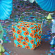 Pappaya tropicale amusante et fruitée sur fond turquoise et vibrant