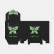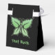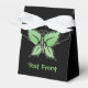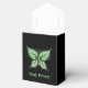 Icône papillon composée de feuilles à la menthe verte. Couleur arrière - plan personnalisée. Texte personnalisé.