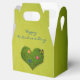 Belle illustration romantique : pelouse en forme de coeur avec fleurs et papillon sur un arrière - plan grungy vert.