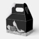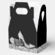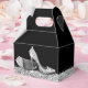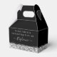 Elégante boîte de faveur personnalisée avec parties scintillant argent talon haute chaussures et une bordure en faux parties scintillant argent avec des sprinkles confetti sur un arrière - plan noir avec texte de remerciement personnalisé, parfait pour un anniversaire moderne et chic, bat mitzvah, Quinceañera, douche nuptiale, baby shower ou fête de bachelorette. UTILISEZ LE DESIGN MODÈLE EDITOR pour modifier les polices, les couleurs et la disposition afin de créer un ballotin personnalisé amusant et unique pour vos invités de fête.