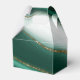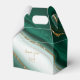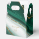 Cet ensemble de design mariage, avec son motif abstrait d'ondulations fluides et de veines d'or scintillant, rappelle les formations rocheuses et les gemmes étincelantes. La palette de couleurs à bijoux dans les tons vert émeraude ajoute à l'attrait. La boîte de faveur de mariage montrée ici a tout ce qui précède avec modèle pour ajouter facilement vos initiales et la date de mariage. Recherchez ID903 pour voir d'autres choix de couleurs et coordonner des pièces pour cette collection de mariages unique.