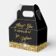 Fun et funky et moderne artsy boîte de faveur avec bordure parties scintillant or jaune sur un arrière - plan noir avec personnalisation Merci texte de brosse, parfait pour un anniversaire moderne et chic, bat mitzvah, Quinceañera, douche nuptiale, baby shower ou fête de bachelorette. Utilisez l'Outil de design Modèle pour modifier les polices, les couleurs et le design afin de créer un ballotin amusant et personnalisé unique pour vos invités de fête.