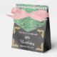 Un élégant Ballotin d'anniversaire, avec feuille d'or et d'argent. Parties scintillant vert clair Zebra imprimé décoré de diamants brillants.