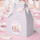 Delight your guests with this Personalized Lavender Gingham Favor Box, perfect for celebrating your baby’s 1st birthday! Featuring a soft lavender checkered pattern, this charming box adds a cozy, elegant touch to your party table. Personalize it with your child’s name or a sweet thank-you message for a thoughtful and coordinated look. Ideal for filling with candies, small toys, or keepsakes, it pairs beautifully with matching gingham party décor.