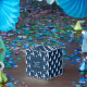 Motif d'avion sur un arrière - plan bleu marine. Idéal pour une fête baby shower ou anniversaire de enfant. Invitation correspondante, assiettes en papier, serviettes, étain à bonbons et bannière disponibles.