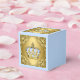 Prince ballotins avec beau bébé bleu et couronne or et élégant arrière - plan tourbillon or. Ces boîtes de faveurs de prince party sont idéales pour un baby shower prince ou une fête d'anniversaire de prince et sont facilement customisées pour votre événement en ajoutant du texte dans le style de police et la couleur de votre choix. Vous pouvez également modifier la couleur de l'arrière - plan et déplacer ou redimensionner la couronne.