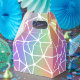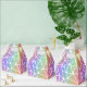 Toile mince en blanc clair sur un dégradé lumineux arc-en-ciel espace négatif.