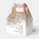 Ce ballotin mariage moderne "Merci" a une atmosphère chaleureuse et personnelle et présente un design d'aquarelle abstrait qui ressemble à des reflets sur l'eau. Cet exemple présente une palette de couleurs dégradées allant de la pêche pâle à la terre cuite foncée. Customisez avec les noms de la mariée et du marié et un message de remerciement personnel en utilisant le modèle fourni. Recherchez ID774 pour voir l'ensemble complet de correspondances et les options de couleurs supplémentaires.