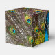 Oeuvre originale d'un paon royal avec son plumage exposé. Les plumes de queue irisées brillent dans les tons bleu, turquoise, vert et violet donnant à cet oiseau fier l'apparence de pourcentage. Les couleurs vives de cette majestueuse pintade brillent dans cet art vivant qui remplit toute l'espace design.