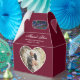 Photo de mariage bordeaux personnalisée merci ballotin avec un cadre photo en forme de coeur.