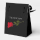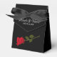 Le mariage gothique Favor Box est conçu pour être élégant et mystérieux. Il est entièrement noir et a un look élégant. La police est dans un gris délicat, presque blanc, qui contraste avec l'arrière - plan sombre. En bas, une rose rouge et un peu de sang dans une petite piscine, donnent à la carte une touche mystérieuse et un peu sombre. Le rose symbolise l'amour et la passion tandis que le sang représente la profondeur des émotions. Dans l'ensemble, la carte dégage un certain drame et une certaine intensité qui attire immédiatement l'attention du destinataire. Idéal pour les couples à la recherche d'un mariage non conventionnel et unique.