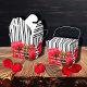 Les boîtes de fête à emporter de 2" x 2" x 2,75" présentent des roses rouges aquarelles sur des rayures noires et blanches et votre personnalisation de remerciement à l'avant et à l'arrière. Voir les articles CORRESPONDANTS dans notre collection.