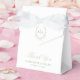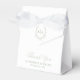 Cet élégant ballotin de mariage dispose d'un arrière - plan blanc avec un monogramme entouré d'une crête/cadre botanique avec un ruban vert sauge. Personnalisez-le selon vos besoins. Vous pouvez trouver des produits correspondants dans mon magasin.