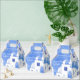 Une aquarelle moderne bleu et blanc d'Oia sur l'étonnante île grecque de Santorin. Art original de Nic Squirrell. Modifiez le texte du Merci pour customiser.