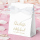 Élégante boîte de remerciement de mariage simple en or et blanc avec des noms de signature élégants et la date spéciale écrite dans une typographie moderne. Vous pouvez personnaliser avec votre propre message de remerciement sous le couvercle. Un moyen parfait de dire merci à vos invités ! Conçu par Thisisnotme©