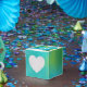 Design de la plage d'été avec des palmiers et des étincelles dans l'arrière - plan.