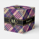 Design écossais violet, jaune doré et bleu. Motif sans couture. Texte et monogramme personnalisés.