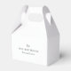 Modern wedding favor boxes featuring a simple yet elegant design with the message "love and thanks" along with your monogram and names.