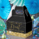 Personnalisé Elegant Real Estate Agent Open House Treat Goody Ballotin avec bordure parties scintillant or jaune et confetti arrose un arrière - plan noir avec des informations de contact personnalisées sur le dos, parfait pour une liste de luxe millions de dollars maison open house ou cadeau client. Cliquez sur CUSTOMISER PLUS loin pour modifier les polices, les couleurs et la disposition afin de créer un ballotin personnalisé amusant et unique pour vos clients potentiels et les acheteurs de maisons.