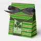 Carte postale irlandaise vintage pour la St Patrick's Day. Conception sur ballotin de tente avec rubans verts et jaunes tout autour du cube.