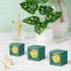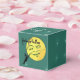 Cette faveur de fête ou boîte cadeau est vert émeraude profond avec des étoiles blanches brillantes et un homme escalade une échelle à une lune jaune avec un visage qui se lit avec le texte Reaching for the Moon. Customisez votre propre texte sur le rabat supérieur avec le modèle.