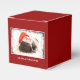 Un ballotin avec une adorable photo d'un chiot qui dort en portant un chapeau santa. Joyeux Noël est écrit sur la bande de son casquette, dans une police manuscrite branchée. Une bordure grinçante avec des lumières de Noël colorées entoure le cadre de cette jolie photo.
