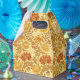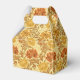 Ballotin dans un William Morris vintage, Art Nouveau, imprimé floral de chrysanthèmes stylisés, numériquement rehaussé et coloré, dans les tons d'or moutarde, brun caramel, et cuivre, sur un arrière - plan crème