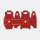 Papier coupé en rouge Rat (image imprimée) à l'angle d'une image ronde avec dragons et silhouette en bambou et une image carré des 12 signes chinois de zodiaque + symbole Yin Yang avec salutation en anglais dans le haut (lettres d'or et ombre portée non personnalisable). Conception sur ballotin gable.