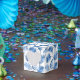 Cette boîte de faveur de fête est parfaite pour votre fête mariage, présentée avec une belle impression de palmier bleu. Customisez cet objet ou achetez tel quel. Stock imprimer freepik.com