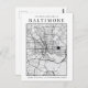 Baltimore Stadtplan + Ortsmarkierung Postkarte