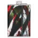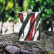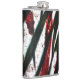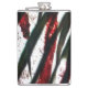 Abstraktes Foto mit breiten, zufälligen Streifen, verwoben in, kühne Farbtöne von, schwarz, rot, dunkelgrün, olivisch und weiß ähneln, Stiele aus Bambus.