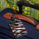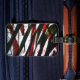 Abstraktes Foto mit breiten, zufälligen Streifen, verwoben in, kühne Farbtöne von, schwarz, rot, dunkelgrün, olivisch und weiß ähneln, Stiele aus Bambus.