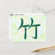 Eine schöne Postkarte mit dem Kanji für Bambus. Die Bedeutung des Kanjis liegt auf der Rückseite der Postkarte.
