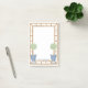 Dieser schicke Post-it-Notizblock enthält ein rundes Olivenhain mit einem blau-weiß gestreiften Bogen in einem Chinoiserie-Topf. Der Rand um den Rand ist ein Bambusrahmen. Sie können mit Ihrem Namen personalisieren.