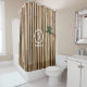 Duschvorhang mit Bambuswand und individualisierbarem Logo und Text.